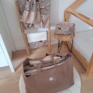 Nincs rajta cipzár ami megnehezítené a kicsik dolgát. Csak benyúlnak és kiveszik, ilyen egyszerű. Elég mély ahhoz, hogy minden elférjen benne amire csak szükségetek van. Az alján van két zseb, ami kialakításának köszönhetően nem csak dísz, pakolható is. A vállfa ajándék! 🙂