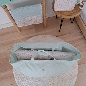A bélelt lepedő (derékalj) antiallergén töltettel készül, sarkain gumival rögzíthető a fektetőhöz, így biztosan nem csúszik el. A dadusok munkáját is nagyban megkönnyíti egy ilyen derékalj, mert a fektetők könnyedén egymásra pakolhatók maradnak. 🙂