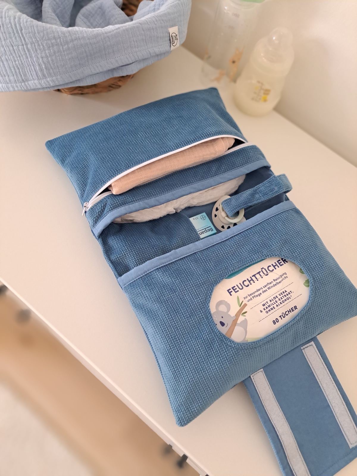 A pelenkázó neszesszerben egy helyen tudhatod a baba pelenkázásához szükséges kellékeket.