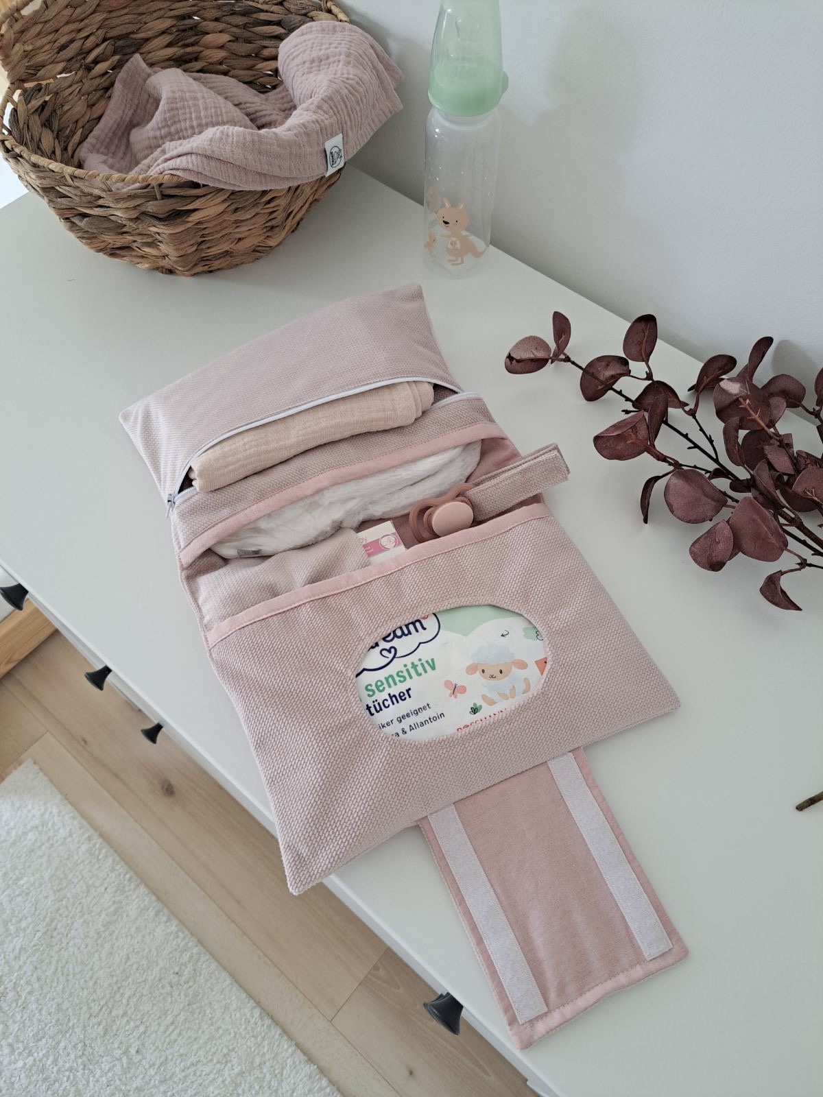 A pelenkázó neszesszerben egy helyen tudhatod a baba pelenkázásához szükséges kellékeket.