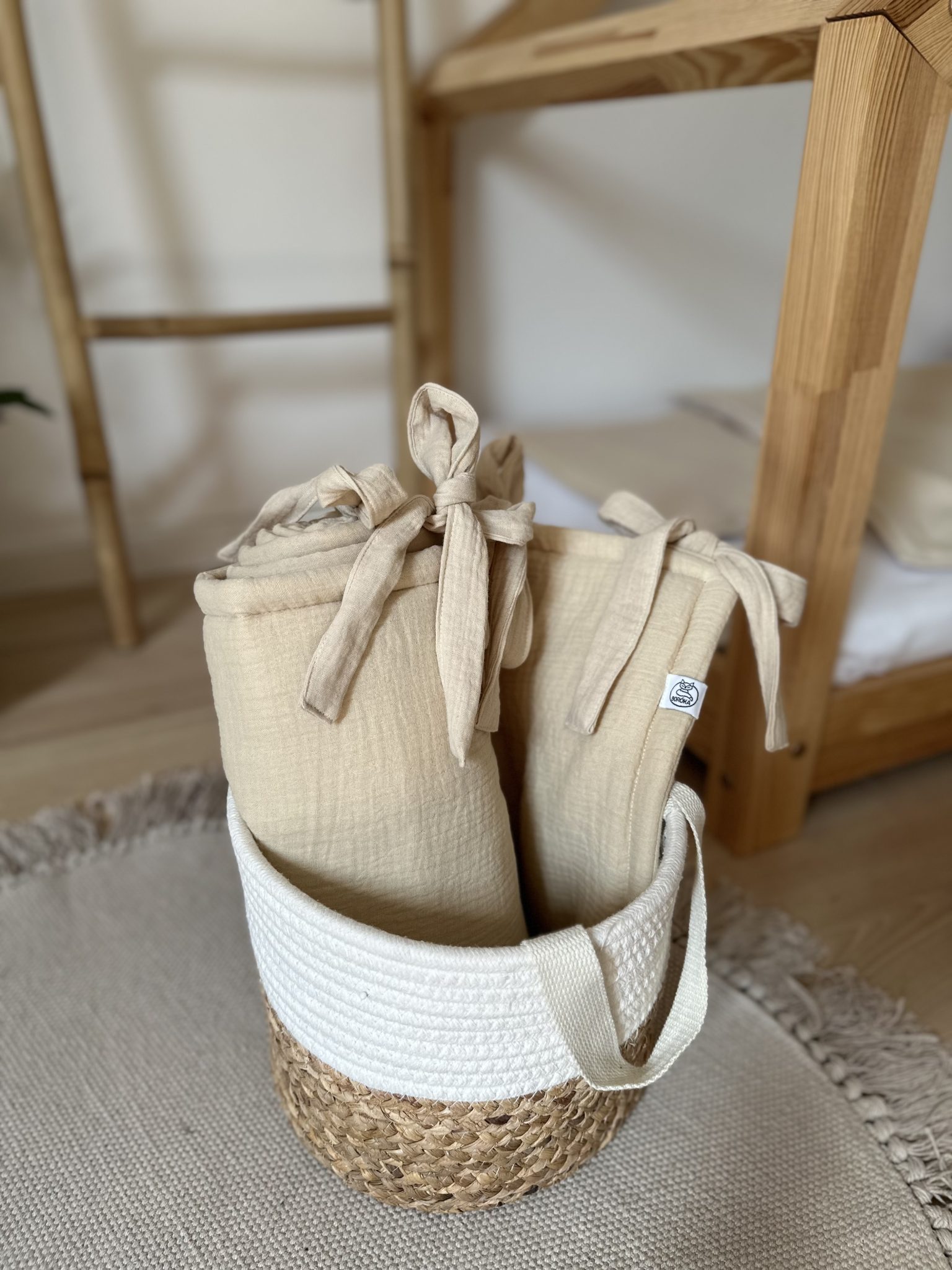 Prémium 100% pamutból készült rácsvédő, amelyet fordítva is használhatsz. Miközben megóvja a baba fejét, gyönyörű kiegészítője tud lenni a babaszobának. Kétféle méretben kérhető: 180 x 30 cm és 210 x 30 cm